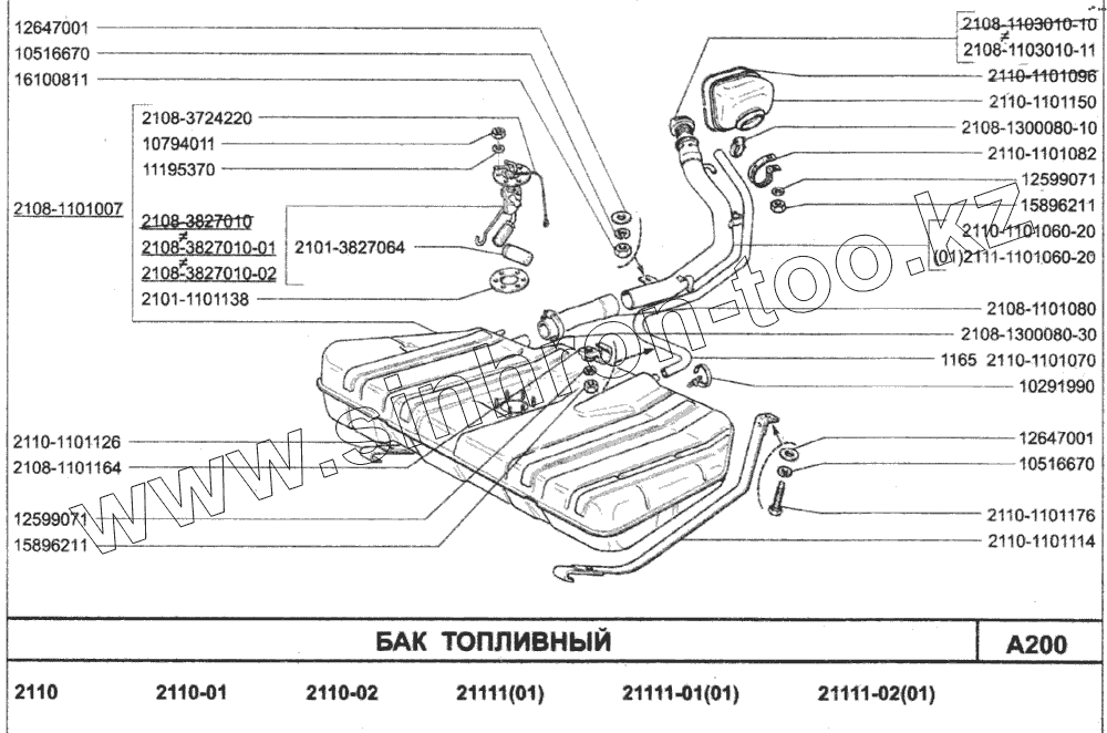 Каталог запасных частей к технике: ВАЗ-2110. Бак топливный