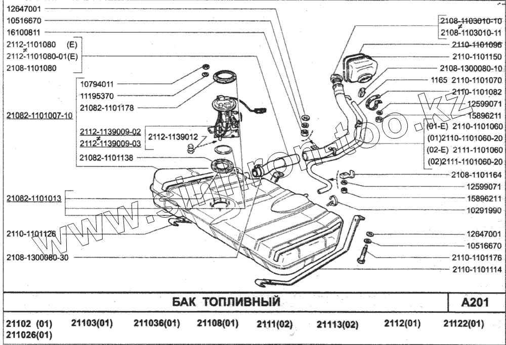 Каталог запасных частей к технике: ВАЗ-2110. Бак топливный