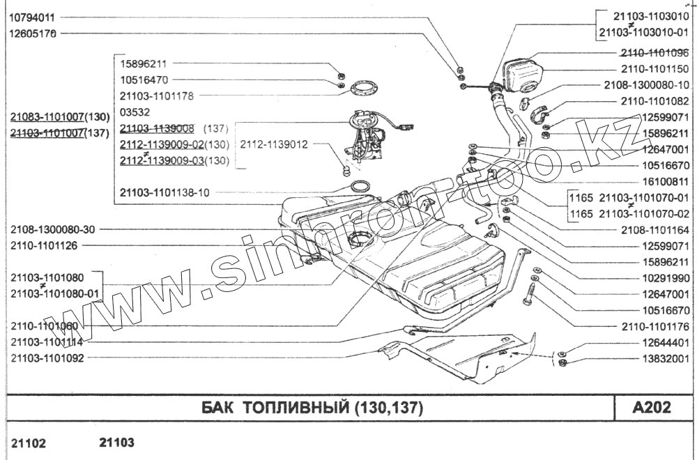 Каталог запасных частей к технике: ВАЗ-2110. Бак топливный (130,137)