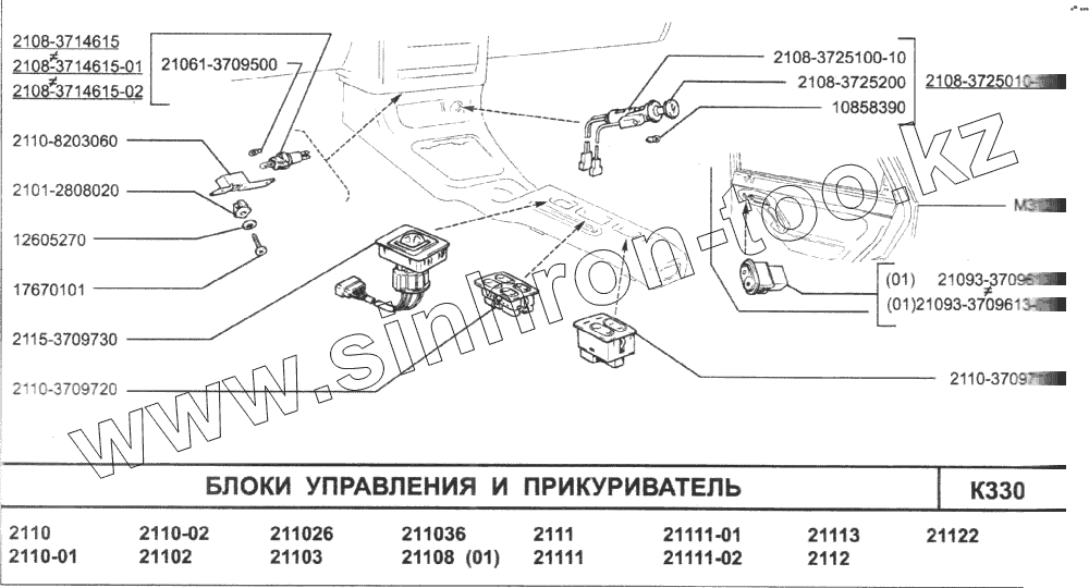 Каталог запасных частей к технике: ВАЗ-2110. Блоки управления и прикуриватель