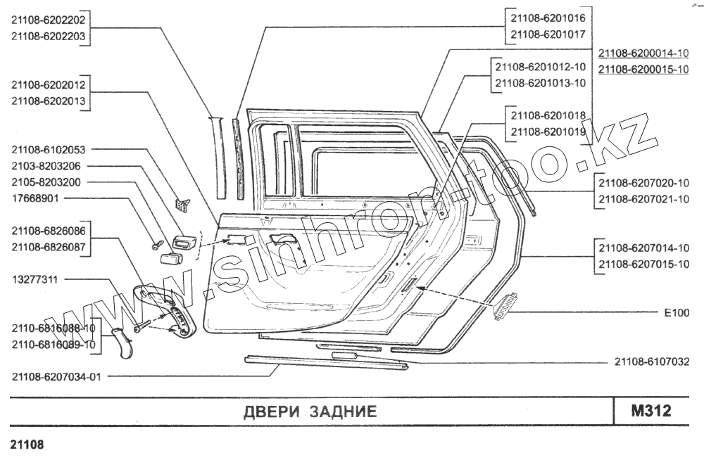Каталог запасных частей к технике: ВАЗ-2110. Двери задние