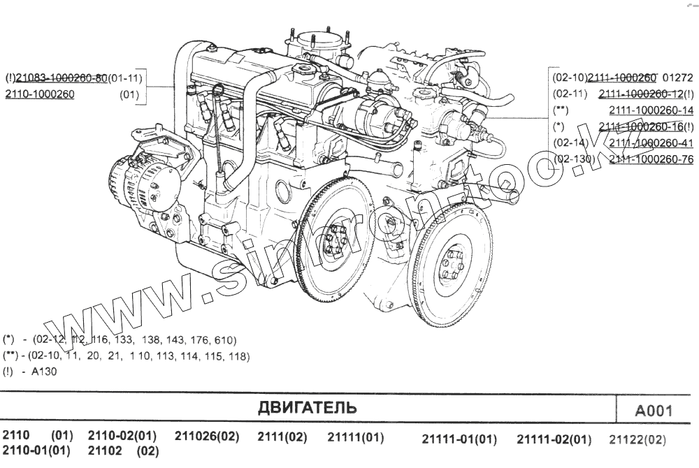 Каталог запасных частей к технике: ВАЗ-2110. Двигатель
