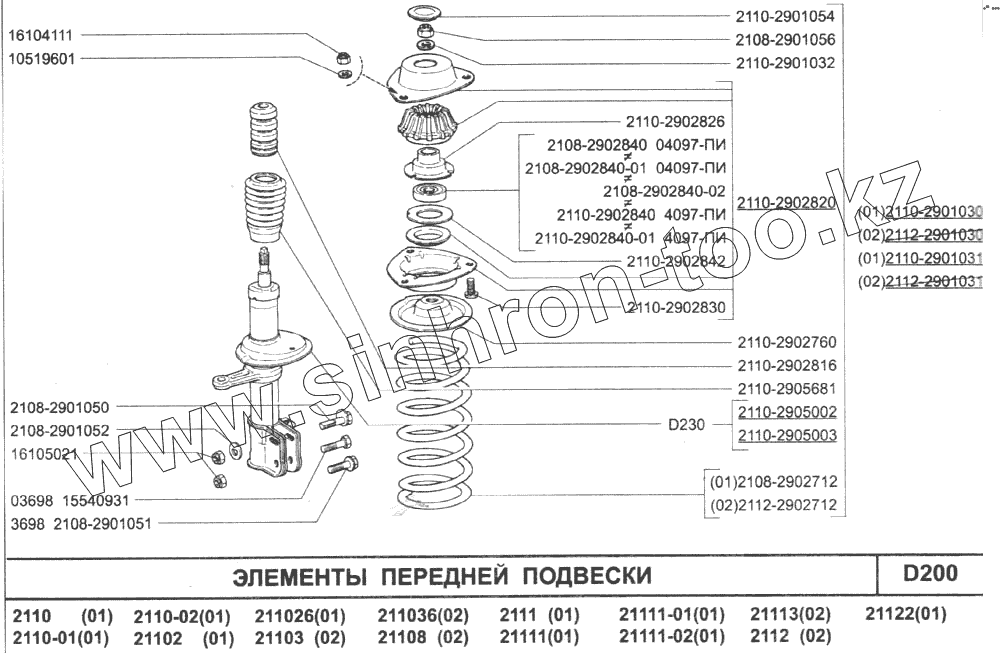 Каталог запасных частей к технике: ВАЗ-2110. Элементы передней подвески