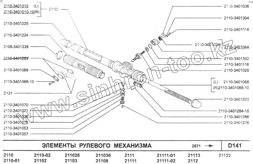 Каталог запасных частей к технике: ВАЗ-2110. Элементы рулевого механизма