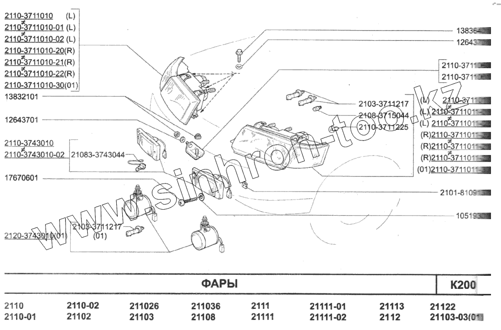 Каталог запасных частей к технике: ВАЗ-2110. Фары