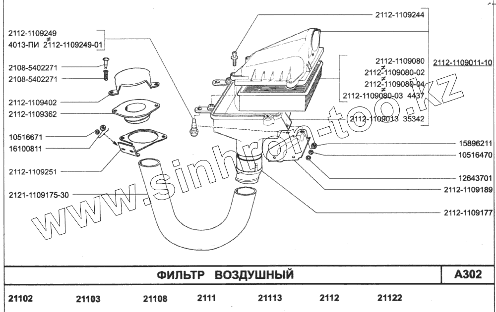 Каталог запасных частей к технике: ВАЗ-2110. Фильтр воздушный
