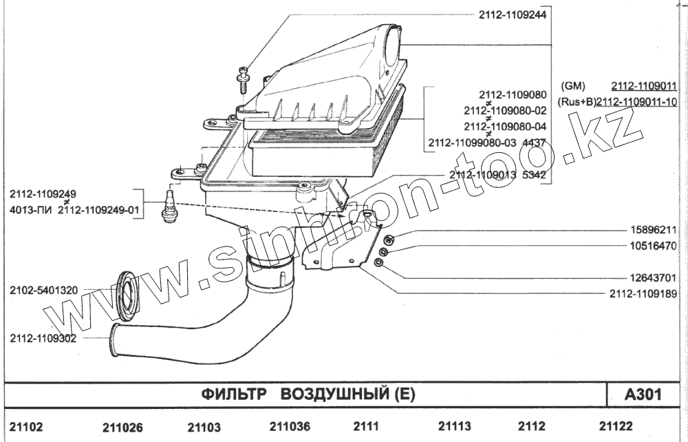 Каталог запасных частей к технике: ВАЗ-2110. Фильтр воздушный (E)