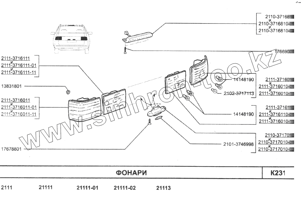 Каталог запасных частей к технике: ВАЗ-2110. Фонари