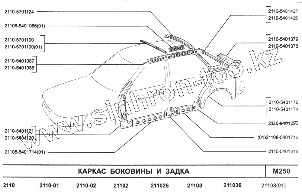 Каталог запасных частей к технике: ВАЗ-2110. Каркас боковины и задка