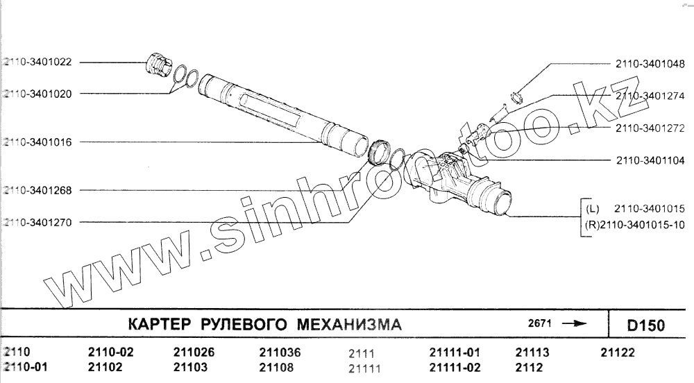 Каталог запасных частей к технике: ВАЗ-2110. Картер рулевого механизма