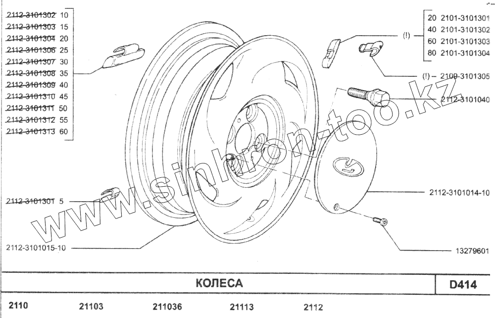 Каталог запасных частей к технике: ВАЗ-2110. Колеса