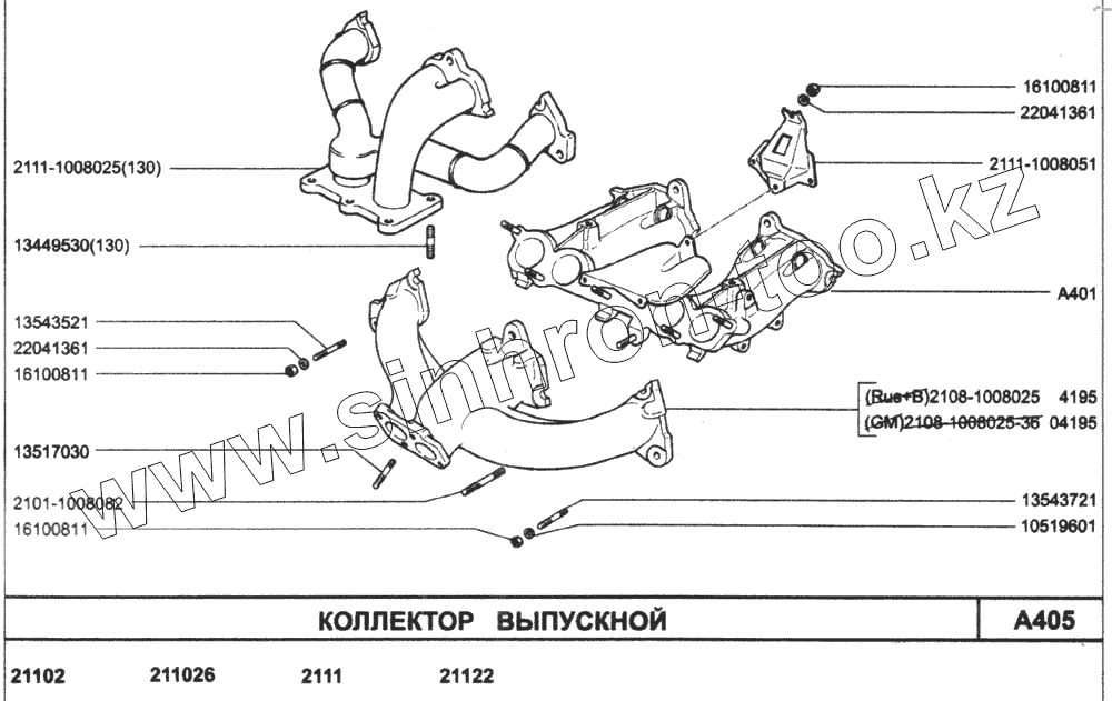 Каталог запасных частей к технике: ВАЗ-2110. Коллектор выпускной