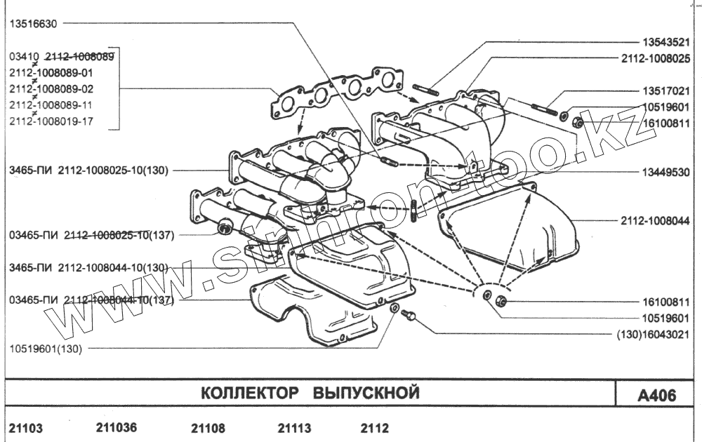 Каталог запасных частей к технике: ВАЗ-2110. Коллектор выпускной