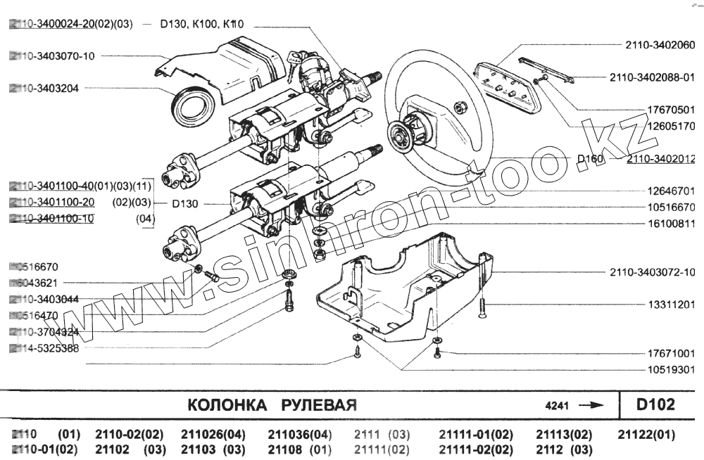 Каталог запасных частей к технике: ВАЗ-2110. Колонка рулевая