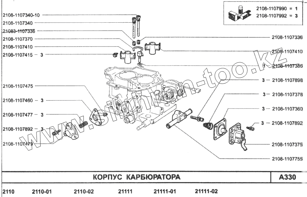 Каталог запасных частей к технике: ВАЗ-2110. Корпус карбюратора