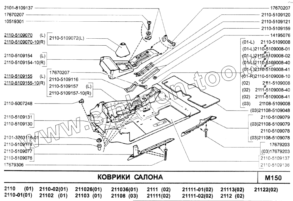 Каталог запасных частей к технике: ВАЗ-2110. Коврики салона