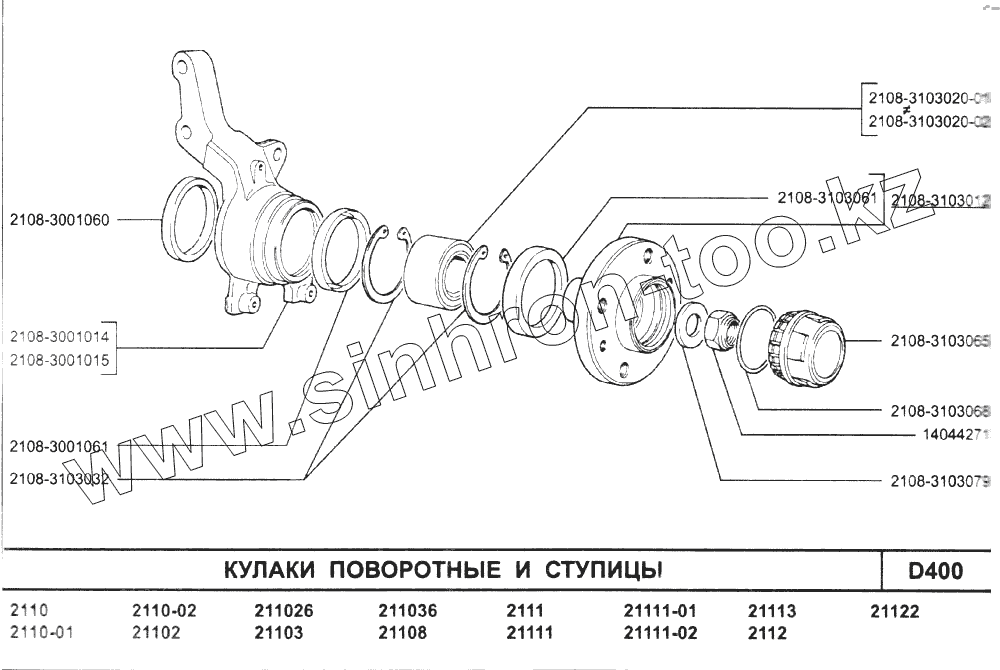 Каталог запасных частей к технике: ВАЗ-2110. Кулаки поворотные и ступицы