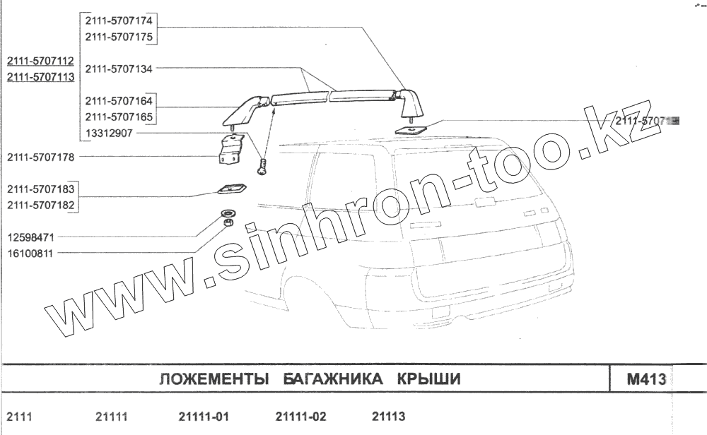 Каталог запасных частей к технике: ВАЗ-2110. Ложементы багажника крыши