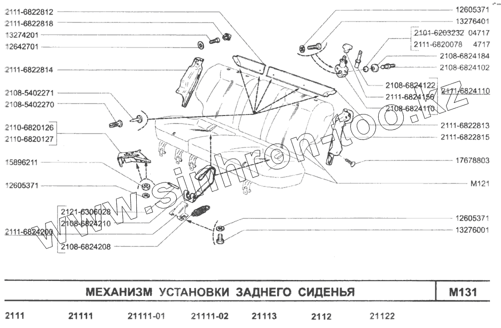 Каталог запасных частей к технике: ВАЗ-2110. Механизм установки заднего сиденья