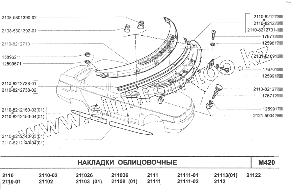 Каталог запасных частей к технике: ВАЗ-2110. Накладки облицовочные