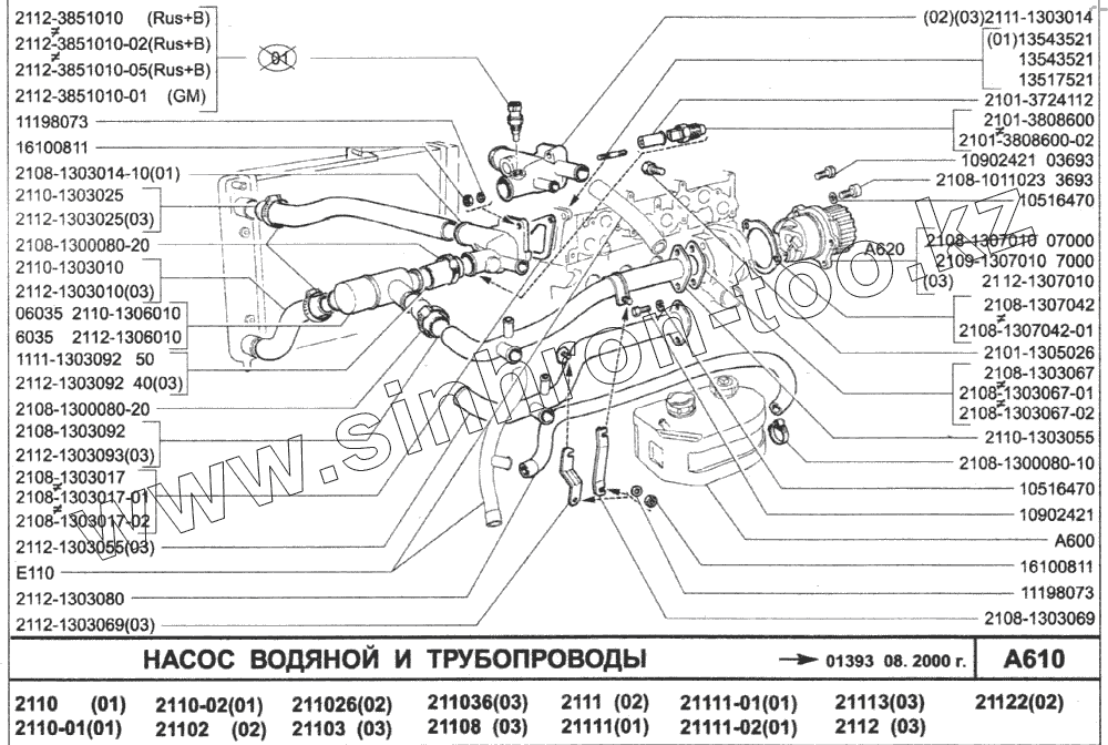 Каталог запасных частей к технике: ВАЗ-2110. Насос водяной и трубопроводы