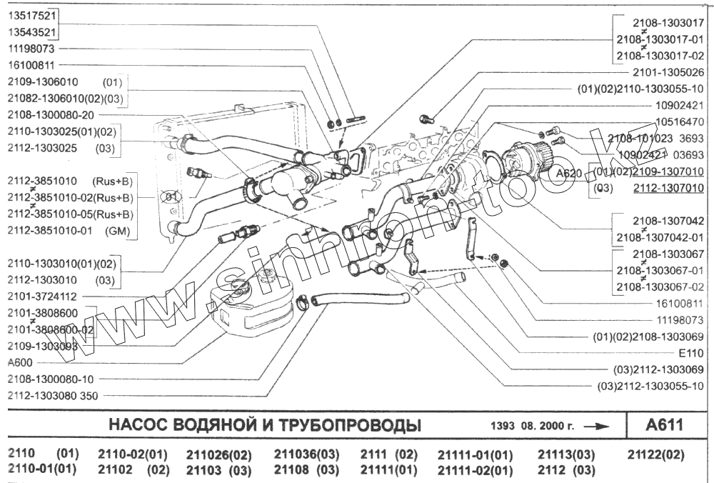 Каталог запасных частей к технике: ВАЗ-2110. Насос водяной и трубопроводы