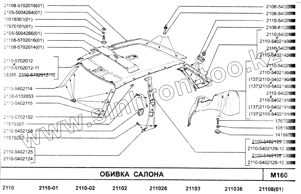 Каталог запасных частей к технике: ВАЗ-2110. Обивка салона
