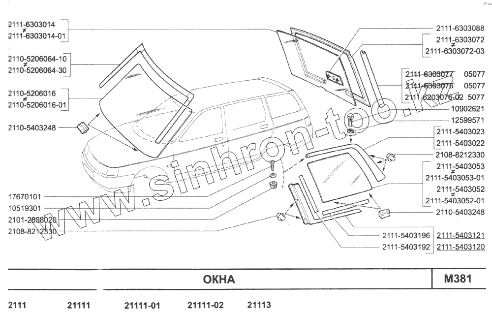 Каталог запасных частей к технике: ВАЗ-2110. Окна