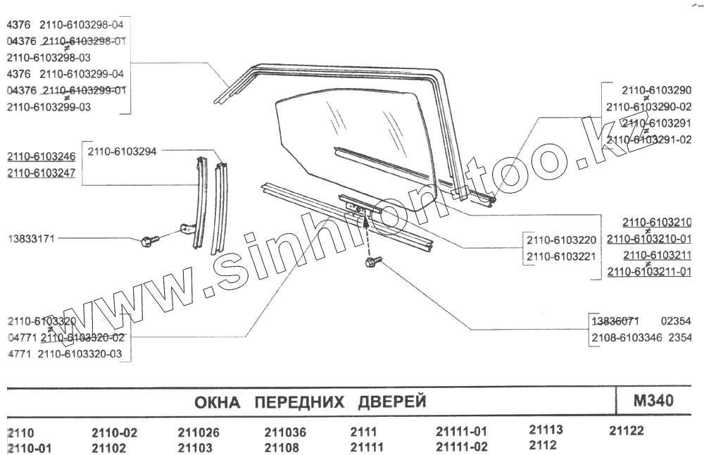 Каталог запасных частей к технике: ВАЗ-2110. Окна передних дверей