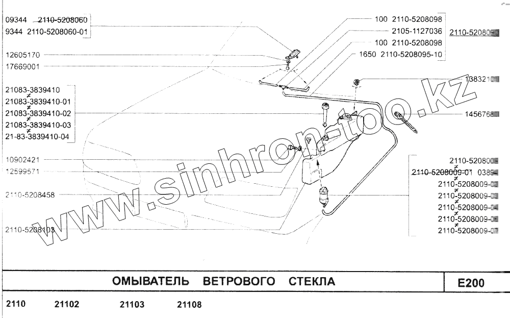 Каталог запасных частей к технике: ВАЗ-2110. Омыватель ветрового стекла