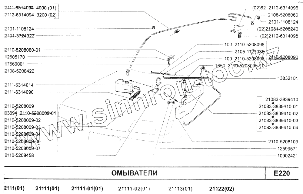 Каталог запасных частей к технике: ВАЗ-2110. Омыватели