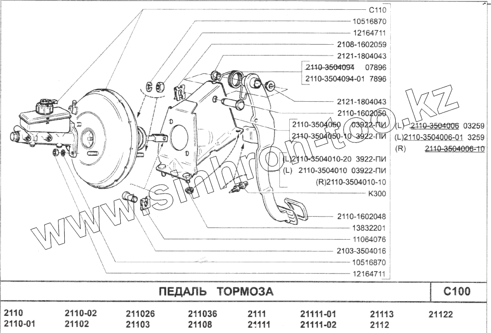 Каталог запасных частей к технике: ВАЗ-2110. Педаль тормоза