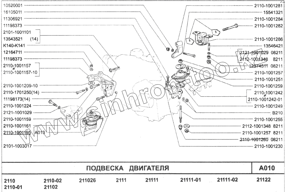 Каталог запасных частей к технике: ВАЗ-2110. Подвеска двигателя