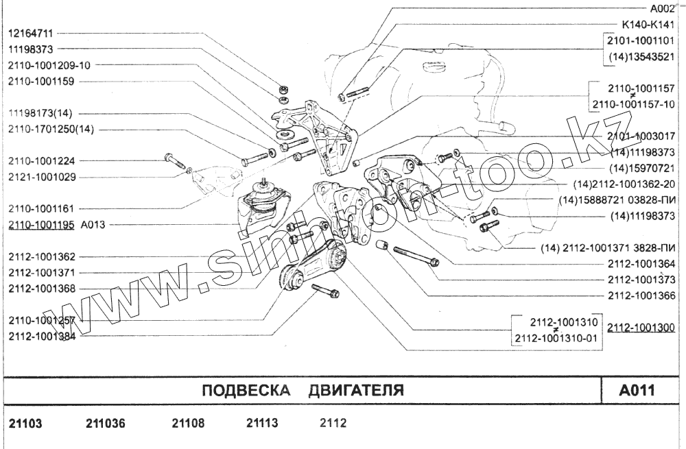 Каталог запасных частей к технике: ВАЗ-2110. Подвеска двигателя