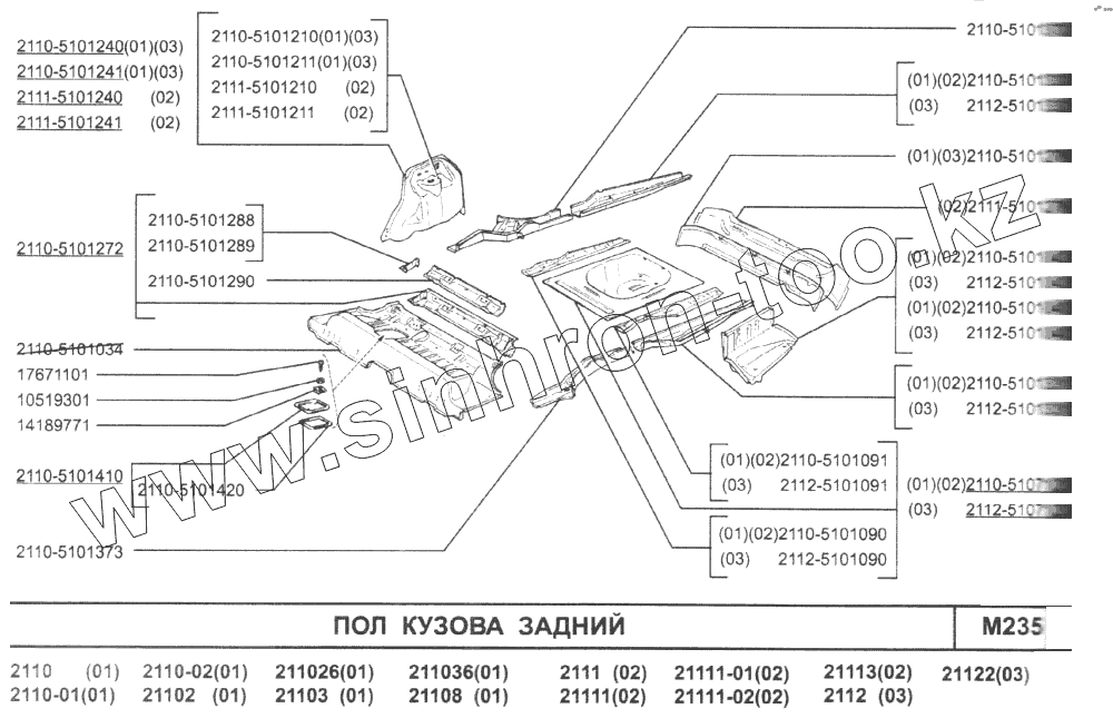 Каталог запасных частей к технике: ВАЗ-2110. Пол кузова задний