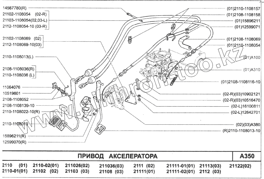 Каталог запасных частей к технике: ВАЗ-2110. Привод акселератора