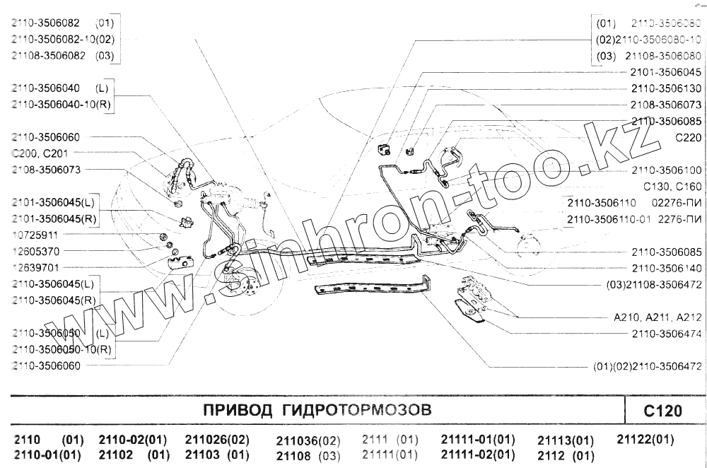Каталог запасных частей к технике: ВАЗ-2110. Привод гидротормозов