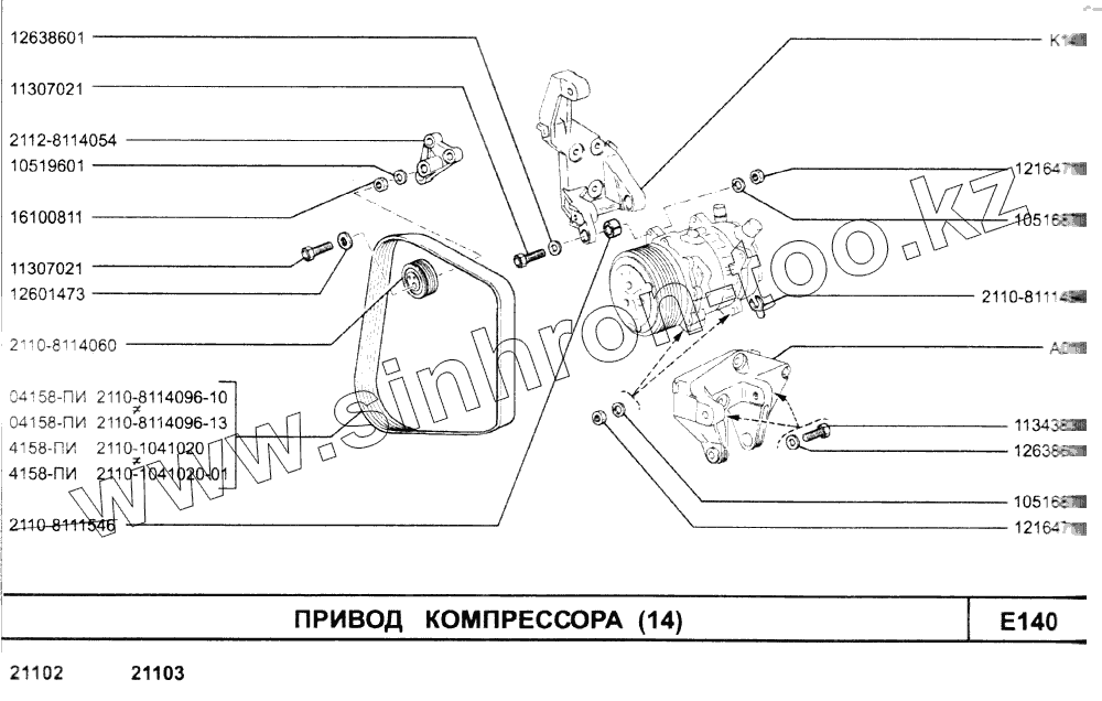 Каталог запасных частей к технике: ВАЗ-2110. Привод компрессора (14)