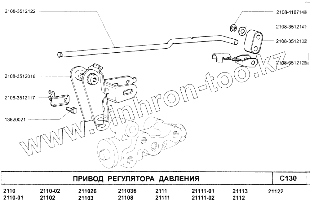 Каталог запасных частей к технике: ВАЗ-2110. Привод регулятора давления