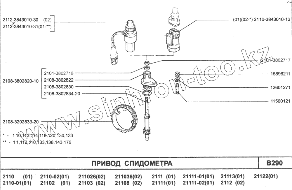 Каталог запасных частей к технике: ВАЗ-2110. Привод спидометра