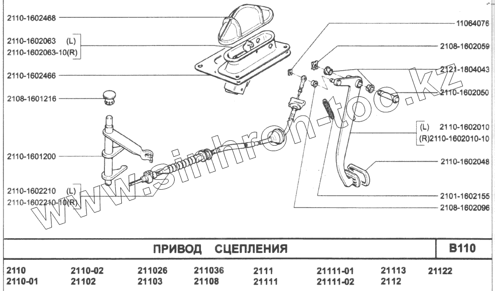 Каталог запасных частей к технике: ВАЗ-2110. Привод сцепления