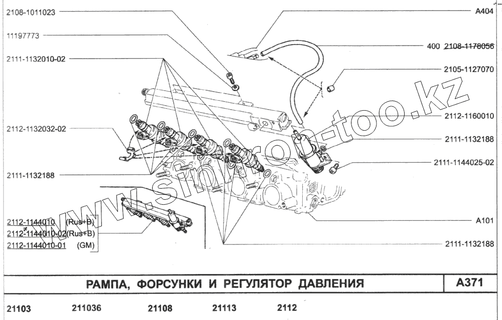 Каталог запасных частей к технике: ВАЗ-2110. Рампа, форсунки и регулятор давления