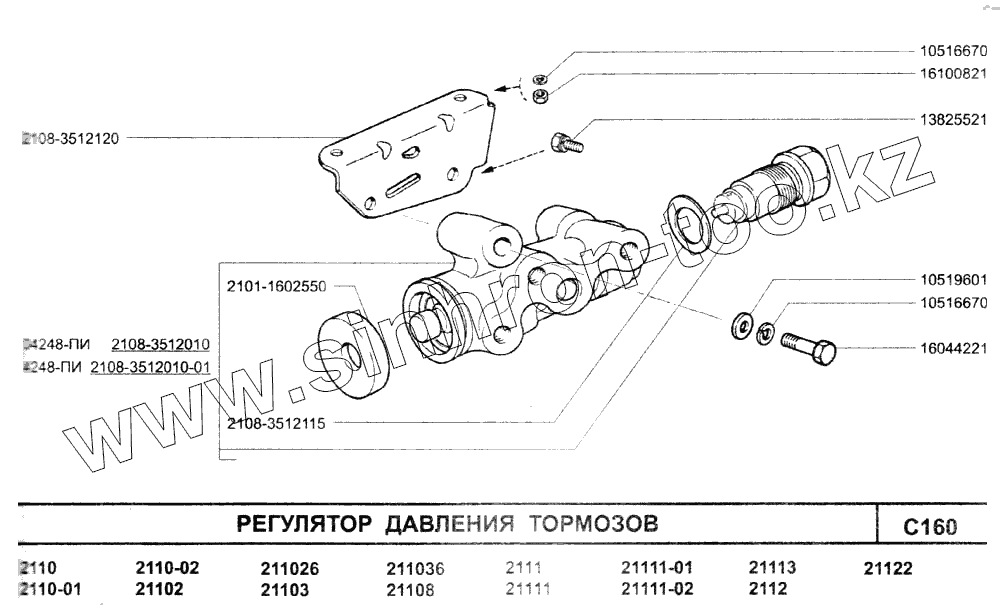 Каталог запасных частей к технике: ВАЗ-2110. Регулятор давления тормозов