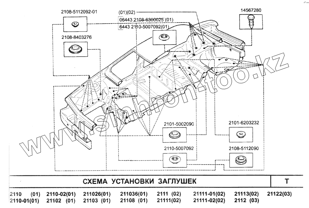 Каталог запасных частей к технике: ВАЗ-2110. Схема установки заглушек