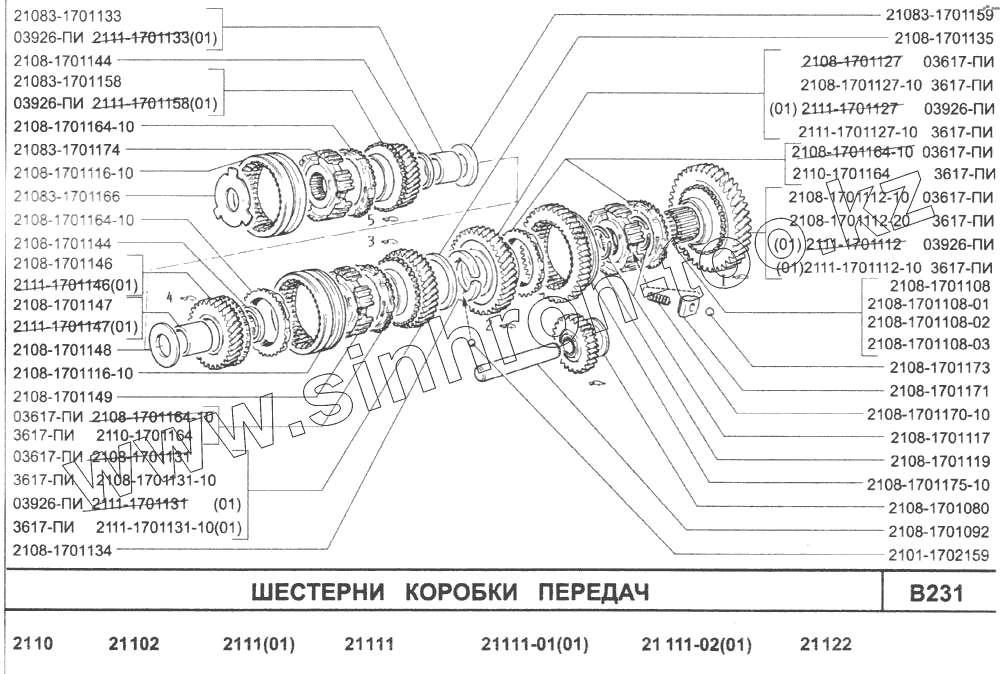 Каталог запасных частей к технике: ВАЗ-2110. Шестерни коробки передач