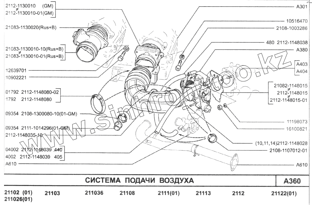 Каталог запасных частей к технике: ВАЗ-2110. Система подачи воздуха