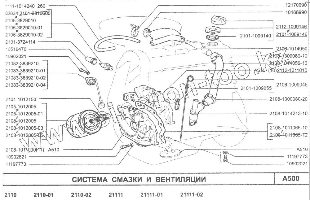 Каталог запасных частей к технике: ВАЗ-2110. Система смазки и вентиляции