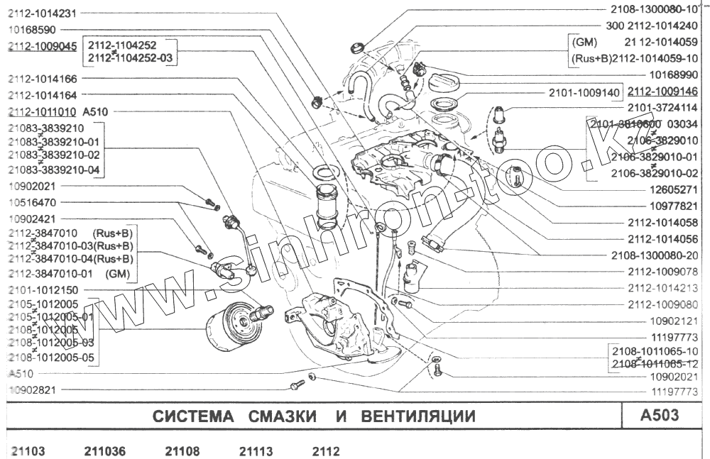 Каталог запасных частей к технике: ВАЗ-2110. Система смазки и вентиляции