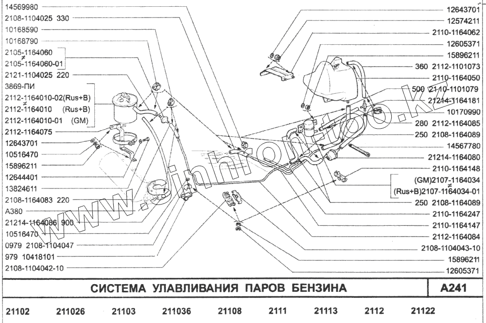 Каталог запасных частей к технике: ВАЗ-2110. Система улавливания паров бензина