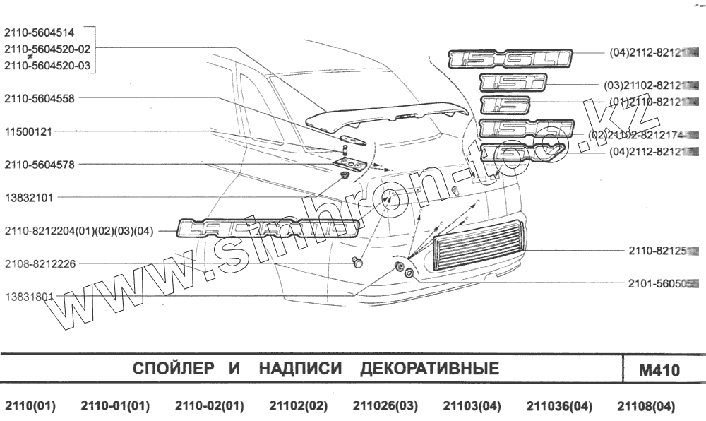 Каталог запасных частей к технике: ВАЗ-2110. спойлер и надписи декоративные